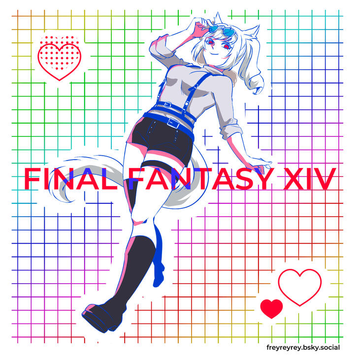 I mostly go by Frey/L and welcome to my portfolio page!I'm obsessed with FFXIV and my WOL Vares (pic below)!Sometimes I do RP in FFXIV while masquerading as a retired professor to do gil commissions.